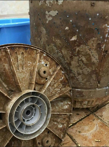 可見使用多年的洗衣機(jī)內(nèi)筒外壁是有多么骯臟不堪。